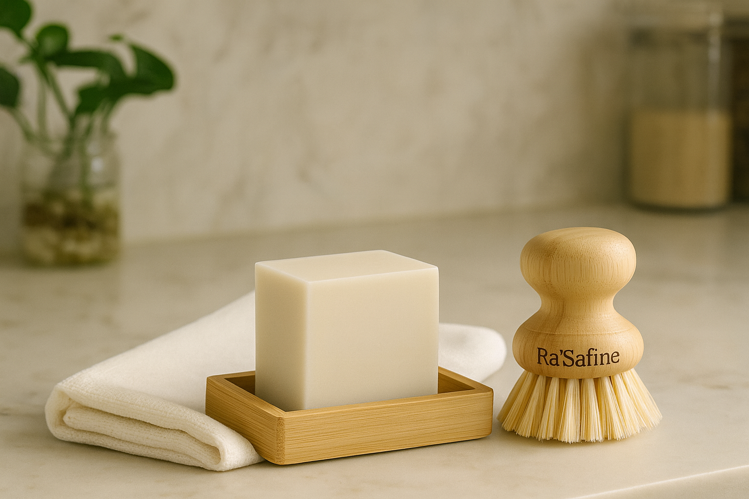 Kimyasallardan uzak, %100 bitkisel sabun ve doğal aksesuarlarla hem bulaşıkların tertemiz olsun hem de doğaya zarar verme. Ra’Safine ile sağlıklı, zarif ve sürdürülebilir bir temizlik deneyimini keşfet.