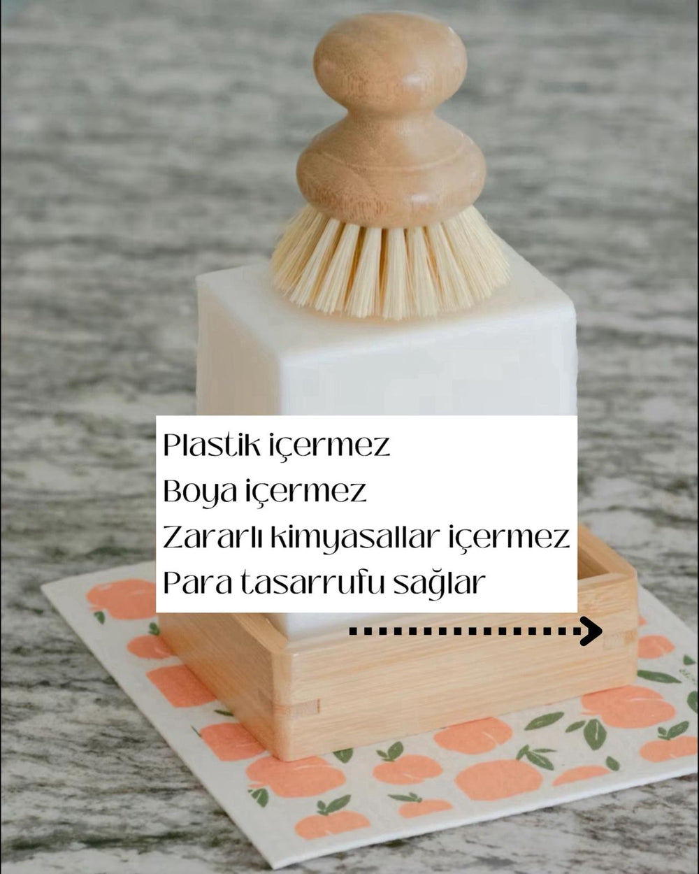Bitkisel içerikli katı sabun, doğal fırça, sabun altlığı ve kurulama beziyle mutfağınızda sağlıklı ve sürdürülebilir temizlik deneyimi.